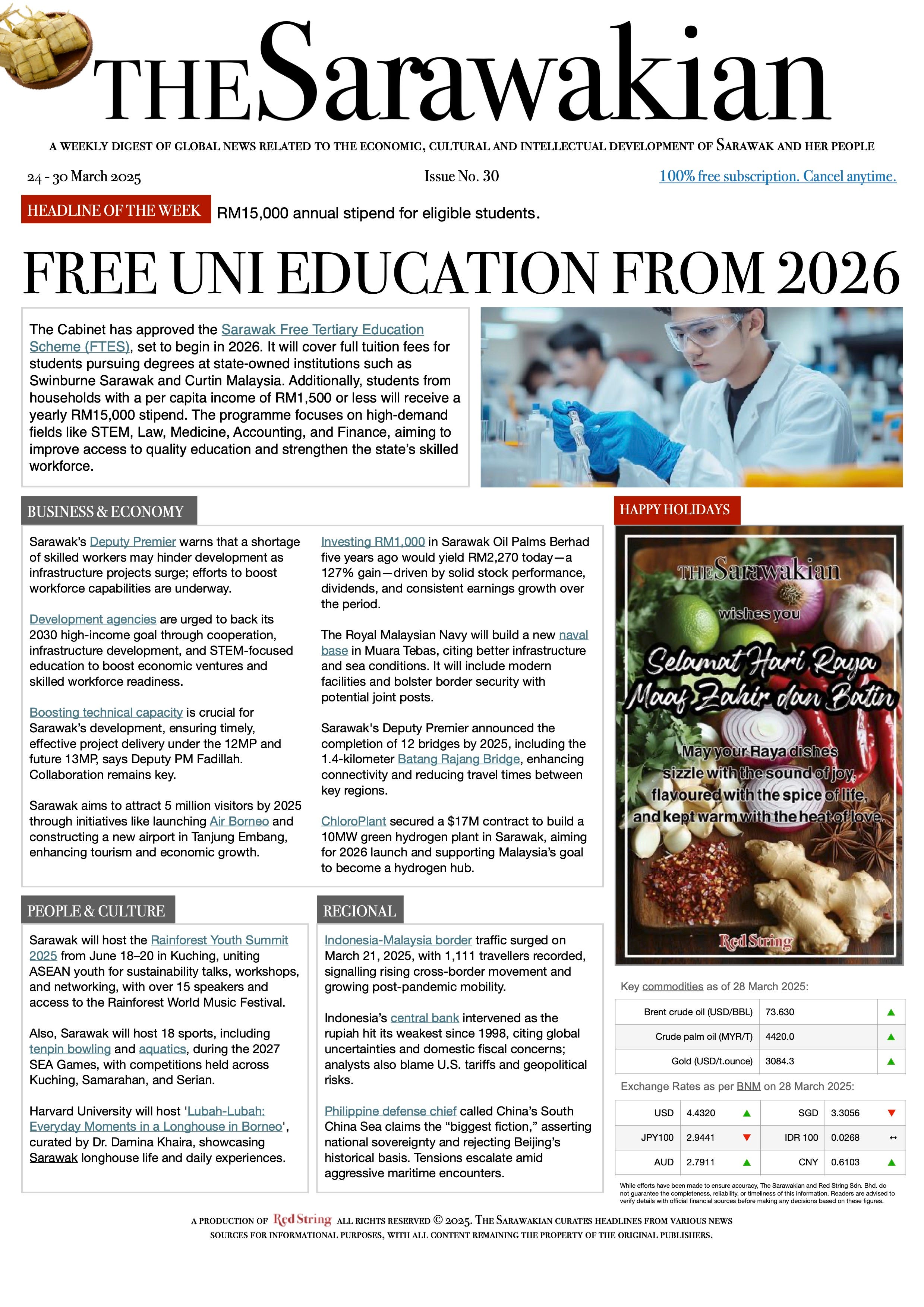Free University Education for Sarawakians From 202624 - 30 Mar 2025 | Issue 30Mooreyameen MohamadJun 11, 2025ShareSubscribe via WhatsApp CommunityTs30339KB ∙ PDF fileDownloadDownload PreviousNext