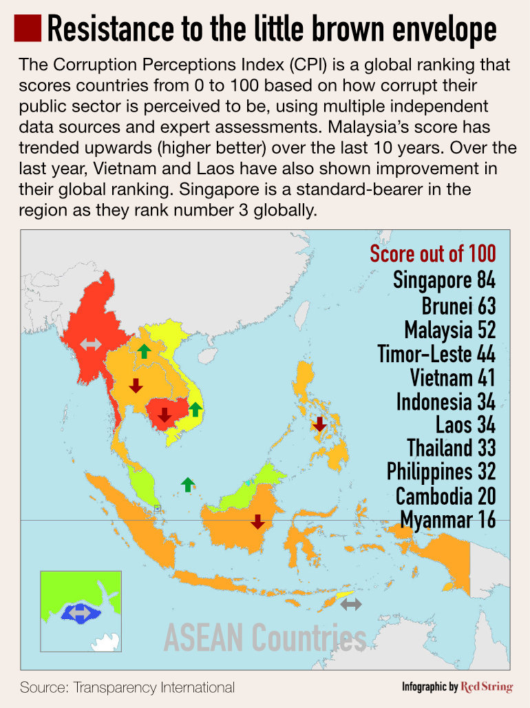The scandal of the week is Bloomberg’s exposé on MACC Chief Tan Sri Azam Baki, which ties in nicely with the latest release of Transparency International report on Corruption Perceptions Index (CPI). Malaysia’s score has been steadily improving… to the middle. The Sidenote article this week gives some insight. Click on the infographic to access the full CPI report.