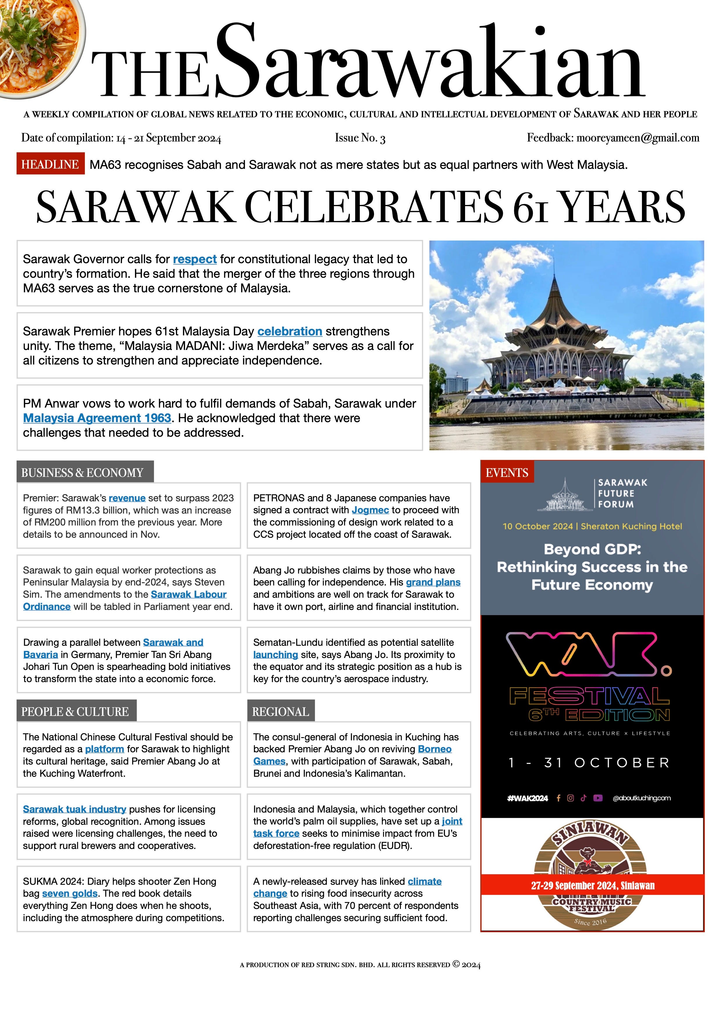 Sarawak Celebrates 61 Years14 - 21 Sep 2024 | Issue 3Mooreyameen MohamadJun 10, 2025ShareSubscribe via WhatsApp CommunityTs031.62MB ∙ PDF fileDownloadDownload PreviousNext